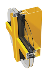 System lekkiej ściany osłonowej. Ściana osłonowa MC-Wall składa się z pionowych słupów i poziomych rygli połączonych ze sobą za pomocą trzpieni wykonanych ze stali nierdzewnej. 2 lub 3 łączniki ¨ 6 ze stali nierdzewnej przypadające na jeden węzeł zapewniają bardzo wysoką nośność połączenia słup-rygiel, zarówno w płaszczyźnie oddziaływania parcia wiatru, jak i w płaszczyźnie obciążenia wypełnieniem. Nie koliduje to z możliwością zastosowania tradycyjnych wsporników rygli, bądź mocowania ich tylko za pomocą wkrętów od czoła. Rygle izolowane są poprzez przekładkę termiczną zaciskaną w firmie Aliplast na etapie produkcji profili. Eliminuje to możliwe do wystą-pienia błędy wynikające z montażu przekładki termicznej na budowie. Rozwiązanie rygla zintegrowanego z przekładką termiczną znacznie przyśpiesza montaż ściany fasadowej. Dobór przekładki zależny jest od grubości wypełnienia w ścianie osłonowej. Możliwe do zastosowania grubości wypełnień to od 2 do 31 mm w przypadku rygli z zagniecioną przekładką termiczną, i do 42 mm w ryglach z odrębną przekładką termiczną. Konstrukcja słupa jest zawsze tradycyjna: to znaczy przekładka termiczna, listwa zaciskowa i maskująca są odrębnymi elementami. Cała konstrukcja ściany osłonowej może być wykończona od zewnątrz różnego rodzaju listwami dekoracyjno – maskującymi o krawędziach zaokrąglonych tzw. „soft line” oraz listwami tradycyjnymi, o kształcie prostokątnym.
